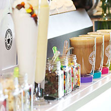 We offer a number of different mobile bars; Cappuccino bars, Milkshake, Freezoccino, Coffee in a Cone, Espresso & Tea Bare - We now offer a Candy Cart.